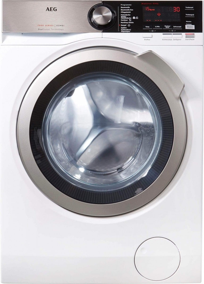 Kurzum: Ein hervorragender 10 kg Waschtrockner von AEG mit innovativer und guter Ausstattung für Vielwascher und Familien. Ein Waschtrockner in Frontladerbauweise. Der AEG Waschrtockner überzeugt durch seine kompakte Bauweise, seine guten Funktionen und die guten Verbrauchswerte. Die Waschleistung ist sehr gut. Aufgrund seines Fassungsvermögens ist er ideal für Familien geeignet, die auf der Suche nach einem sehr guten Kombigerät sind. Insgesamt überzeugt der Waschtrockner durch seine sehr guten Komfortfunktionen, den fantastischen Programmen, die alles Basisanforderungen genügen und auf leisen Betrieb Acht geben. Die DualSense Technologie wertet den Waschtrockner ungemein auf! Ein hervorragender Waschtrockner mit optimalen Waschzeiten und sehr guten Ergebnisse zum guten Preis.Kare Kaufempfehlung für Familien und Haushalte mit hohen Ansprüchen an Zuverlässigkeit, Technik und Service!