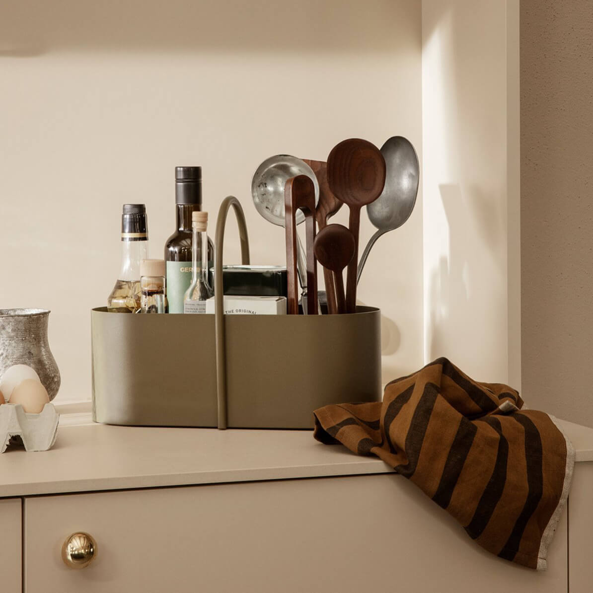 Die elegante ferm Grib Toolbox Hellgrau ist ein praktischer Helfer, den du vielseitig nutzen kannst. Wenngleich der Name für einen Werkzeugkasten steht, ist die Toolbox doch weit mehr. Sie eignet sich bestens, um nützliche Utensilien zu transportieren und aufzubewahren. Da in den Boden der Box Löcher eingearbeitet sind, kann sich darüber hinaus keine Nässe stauen.
