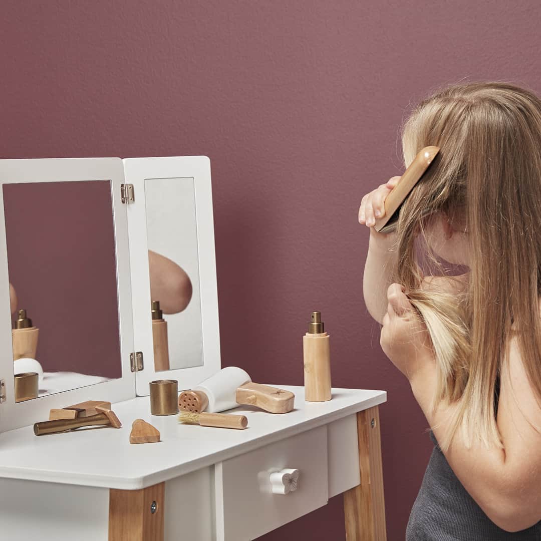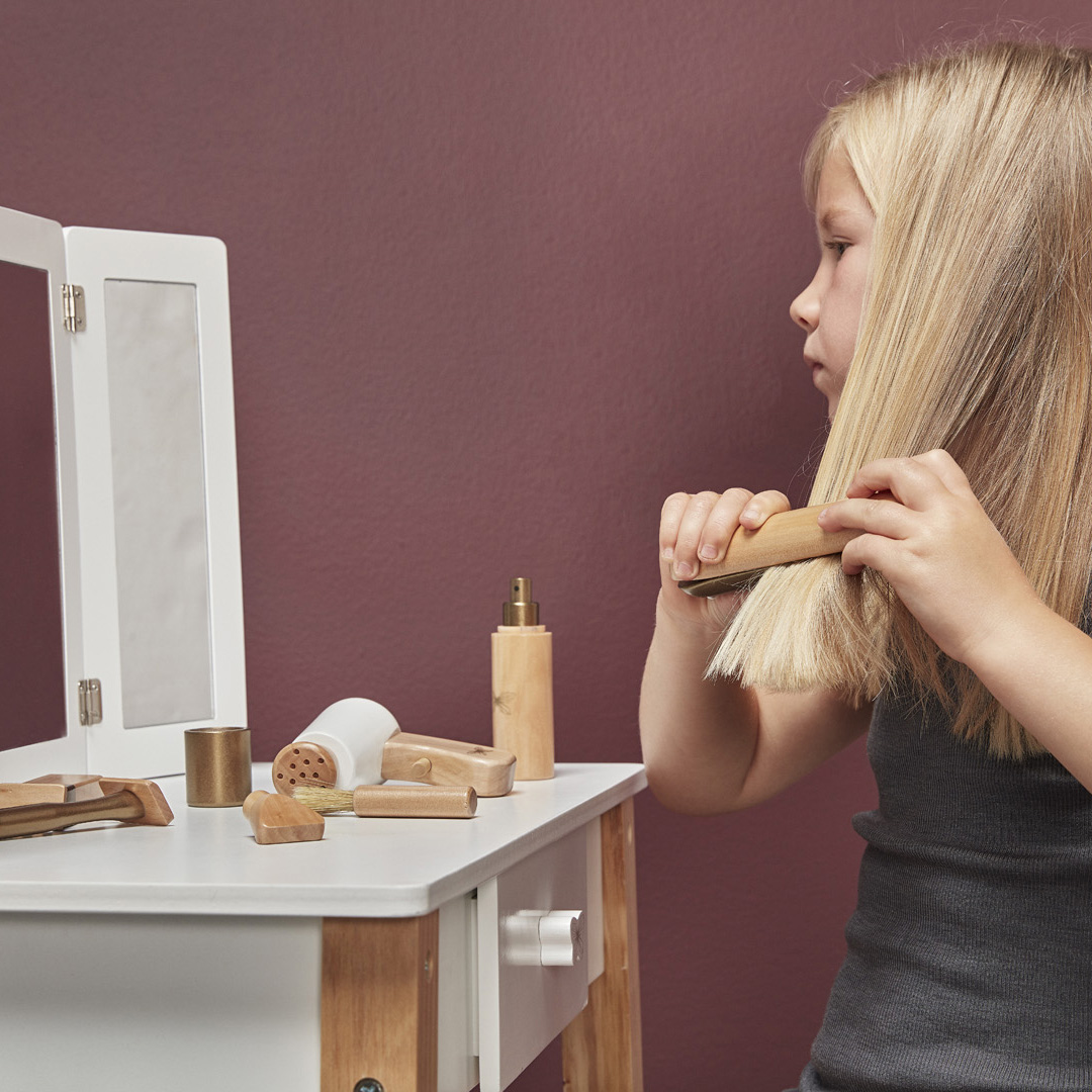 Nach dem Duschen wird geföhnt, gekämmt und aufgestylt – was für Mami zum nervigen Alltag gehört, ist für den Nachwuchs meist äußerst interessant. Mit diesem Frisier-Set lernen Kinder spielerisch, wofür all die Bürsten und Sprays gut sind – und können sich für die nächste Kuscheltier-Party aufstylen!