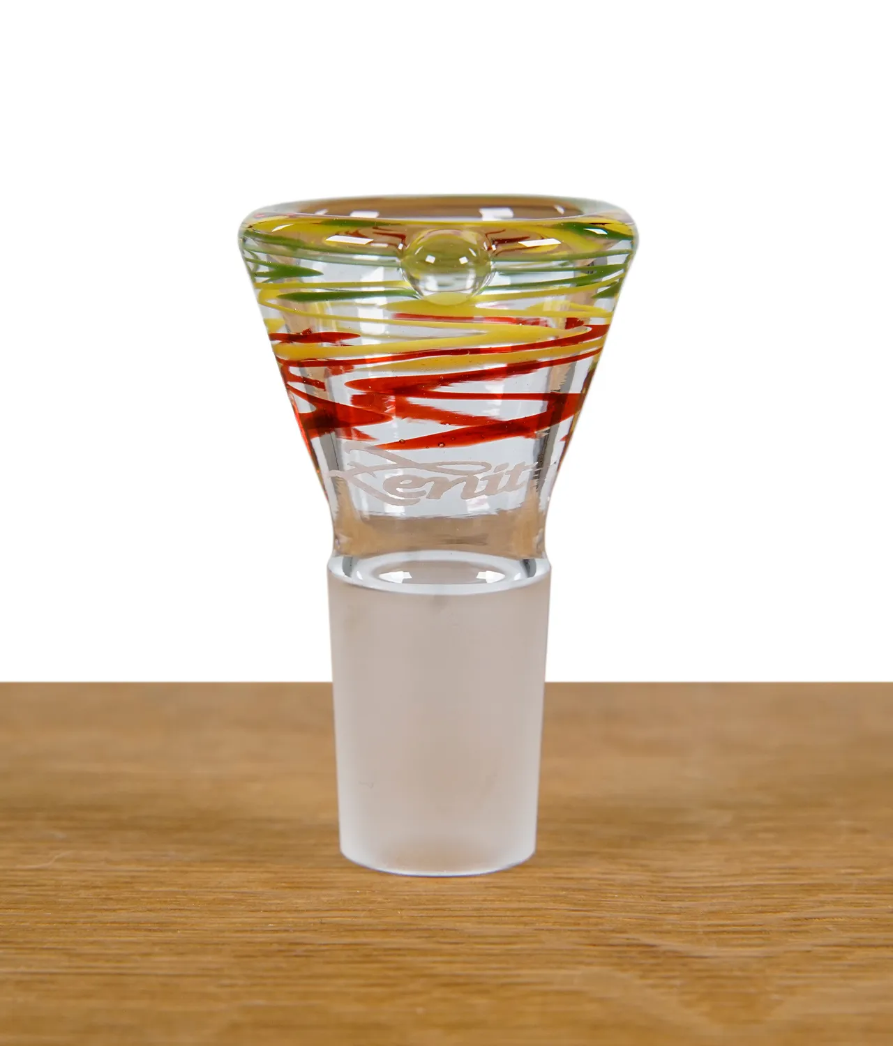 Der Zenit Flutschkopf mit NS19 im Twister Rastafarben Design aus dem Hause Zenit ist ein hochwertiges Bongköpfchen – Made in Germany